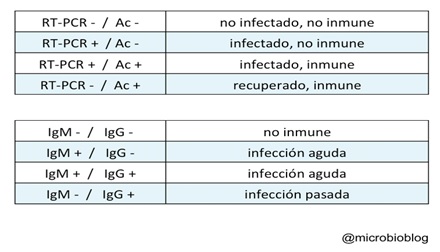 Desde el ámbito del Laboratorio lo más importante es diagnosticar individualmente quién tiene la enfermedad y está en la capacidad cierta de contagiar mediante la prueba de reacción en cadena de polimerasa ( PCR); pero también ya en esta fase de la pandemia interesa saber quién ya ha superado la enfermedad, está inmunizado y posiblemente ya no contagiará, mediante pruebas que detecten anticuerpos generados contra el virus, es decir el cribado de la población que permita establecer contagiados e inmunizados. Hasta la actualidad no hay evidencia -ni a favor ni en contra- de que los anticuerpos IgG sean suficientes para neutralizar el COVID-19., ni por el tiempo que lo harían.